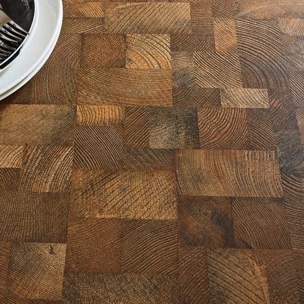 The modern-meets-classic design of this round dining table is perfect for small spaces. With an elegant wood parquet effect tabletop and four steel powder-coated legs, it’s both beautiful and sturdy.