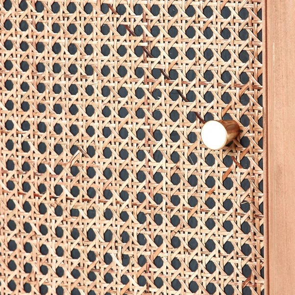 Characterised by the stunning natural rattan fronts and contrasting black surround, the Franco collection brings a modern take on a retro design. Perfect for any contemporary or global styled home, this furniture range is completed with brushed gold effect handles, adding a touch of luxe styling.