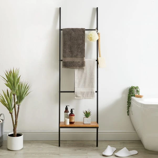 Boasting a contemporary and modern design, our Fulton Wood ladder shelf will bring style to any bathroom. The ladder shelf is multi-functional with one shelf and 3 rails to use how you desire. Beautifully crafted from acacia wood, the ladder requires full assembly which is easy to do! Coordinating Fulton Wood bathroom accessories are available.