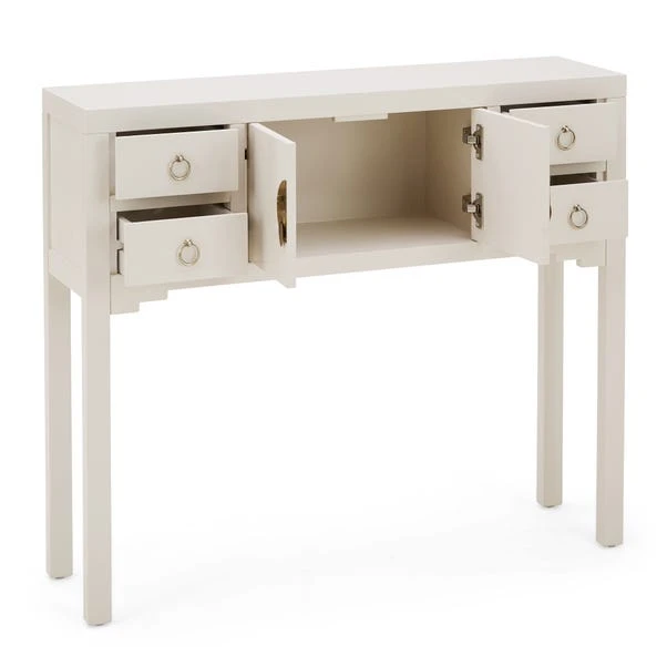 Featuring a beautiful Chinese and Japanese inspired design, the Hanna range offer a versatile storage solution that will add a unique touch to your home. Designed in a beautiful oyster finish colourway and a contrasting distressed gold detailing, this exquisite range features authentic oriental handles with a loose pin lock mechanism, perfect to glam any room.