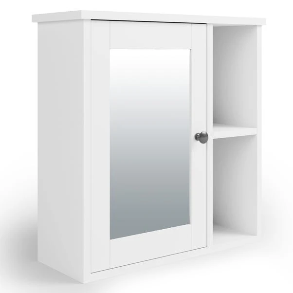 Perfect for any smaller bathroom in need of storage, this mirror cabinet comes complete with large glass mirror pane that instantly enhances the feeling of light and space in your bathroom. Half of this wall unit has 2 open shelves, making it easy to grab towels and toiletries. The other half is hidden behind a cabinet door and is perfect for medicines and more.