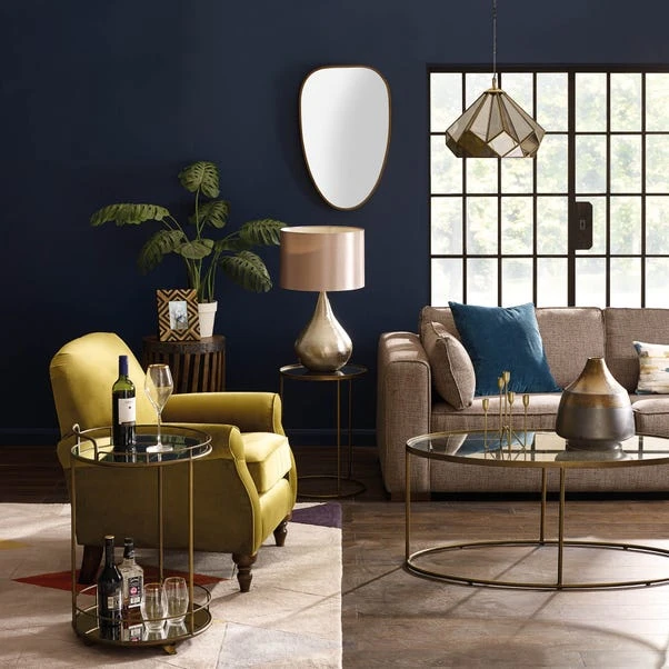 Featuring a retro design crafted from iron and mirrored glass, this traditional drinks trolley is finished in an antique brass effect and offers a convenient handle and wheels for manoeuvrability.