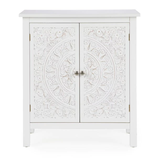 Elegantly designed with a detailed carved out pattern front, the Samira range features a simple yet clean, structured finish. A contemporary style, the Samira range boasts a chunky, wooden design along with beautifully finished metal handles and a natural lacquered paint surface.