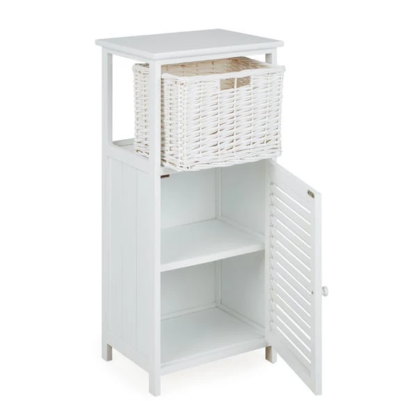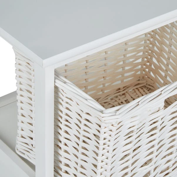 Perfect for adding a stylish storage unit to your bathroom, this painted white unit has two drawers and a wicker basket for ample storage. With a large top this unit is perfect for displaying candles, bathroom ornament, plants and more. This unit is also available in grey.