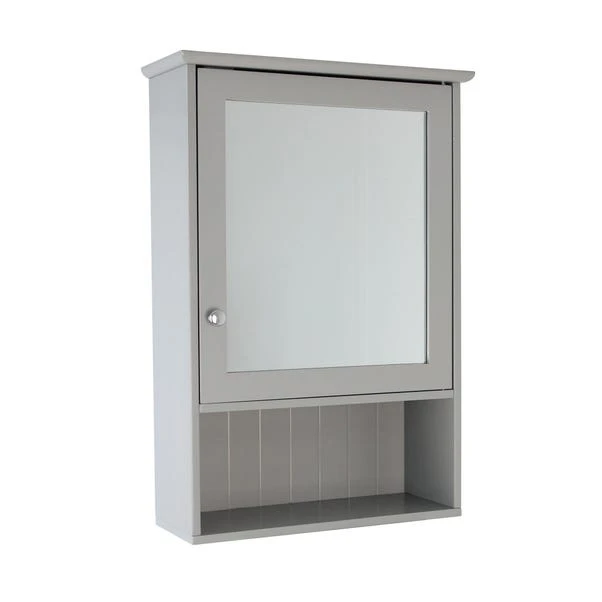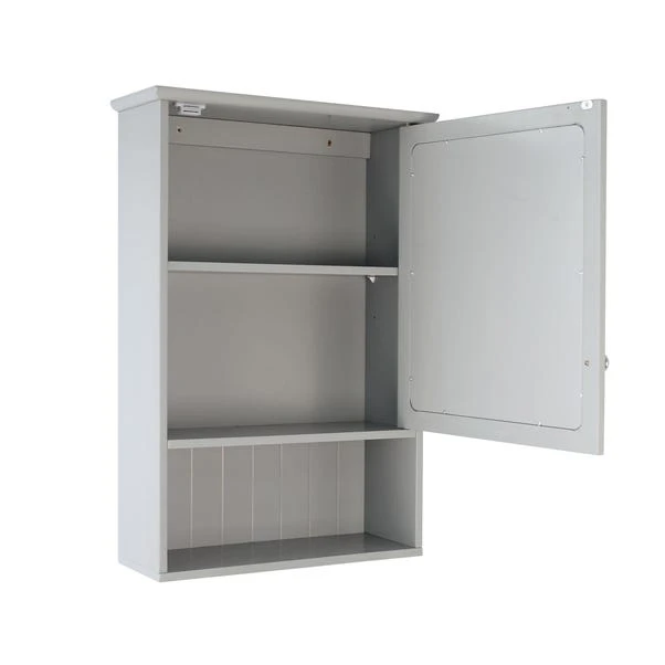 Attaching to the wall of your bathroom and preventing floor clutter, this wall cabinet features 3 useful shelves with a hinged door that is complete with a useful mirror. With a stylish grey finish, the cabinet is contemporary in design and will suit a variety of bathroom decor styles.