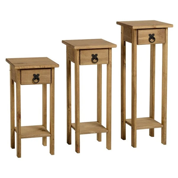 The Seconique Corona Set of 3 Plant Stands boasts a beautiful distressed waxed pine finish that will bring a whole new look to your home. The attractive design with metal drop handles and the rich colour of the wood make it a superb piece of furniture to look at that is also highly functional.